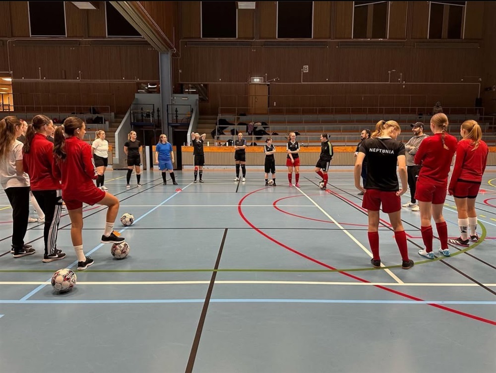 Uppvärmning sker utomhus eller i korridoren utanför omklädningsrummet. Ta med egna bollar.